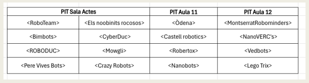 Les aules de competició que s'utilitzaran per PIT són: Sala d'Actes, Aula 11 i Aula 12